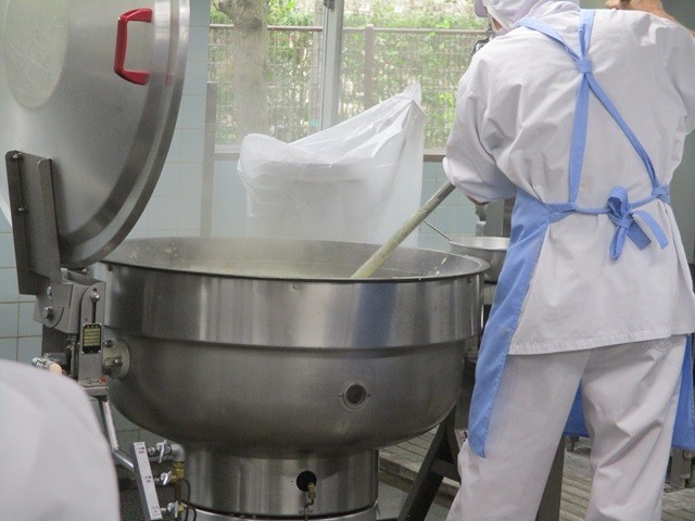 写真は、ご飯の作業風景とかきたま汁の調理風景です。