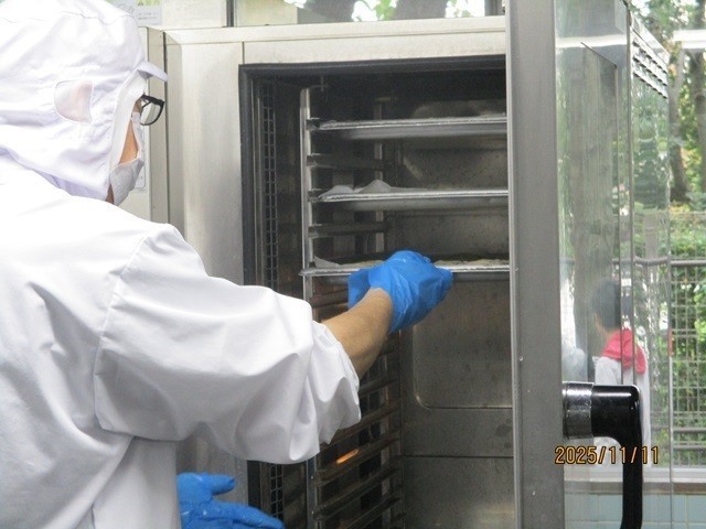 写真は、ラーメンの具の調理風景、大学芋の調理風景です。