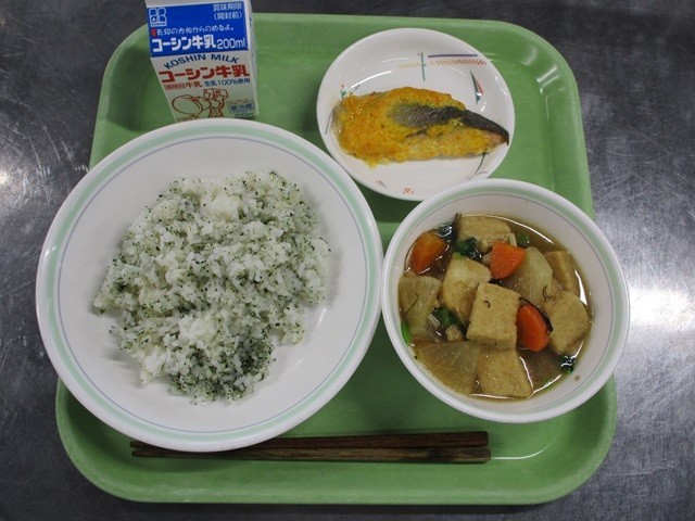 白菜や大根、人参などの野菜がたっぷり入った、赤みそと白みその合わせみそ仕立てのみそ汁でした。寒さが増してきたこの時期にぴったりで、体が温まりました。