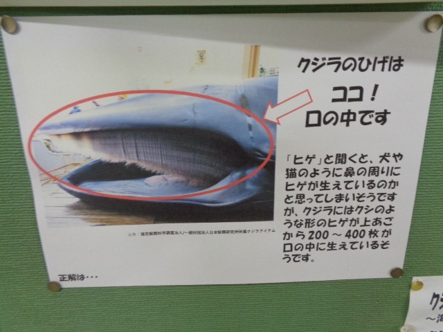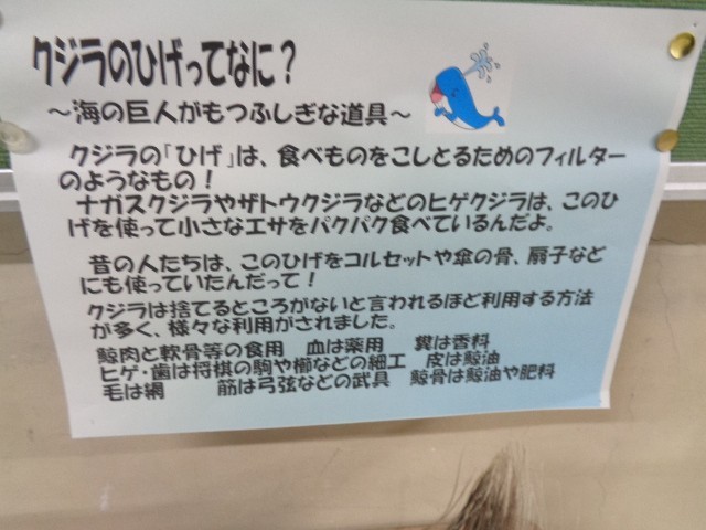 (廊下に展示されたクジラのひげの写真を追加しました。写真上の「+5」をクリックしてください。)