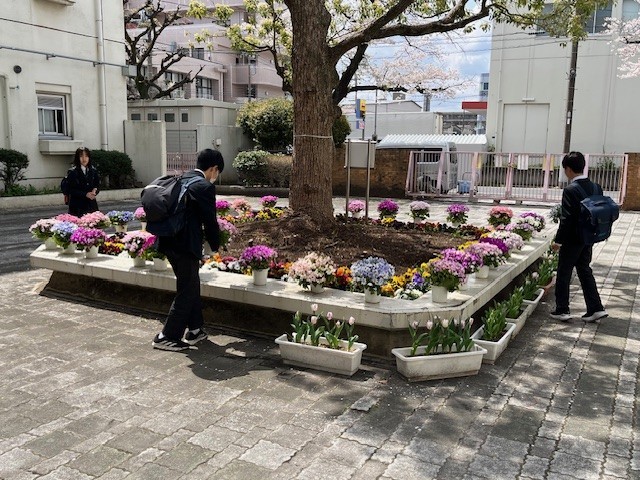 本日の写真は、昨年3月から4月に撮影したものです。春休み中のラッパスイセン、舟渡桜まつりでの吹奏楽部・茶華道部の活動、創立42周年スタート、新学期に向けた校門周辺の整備、入学式当日の様子(校門・入学式)です。新たなスタートを感じさせる場面です。