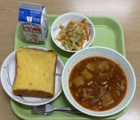 牛乳フレンチトーストコーンと野菜のサラダチキントマトスープ【😊今日の食レポ😊】 今日の食レポは、9年1組給食委員がお届けします!🍞🍳フレンチトースト 食パンに味がよく染み込んでいてとても甘く美味しかっ...
