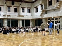 2日目の夜は、レク係が企画した「夜レク」が行われました。 まずは「関門ゲーム」。先生&レク係チームに対して、生徒チームがじゃんけんで挑み、勝ち抜けをめざすゲームです。先生に勝った瞬間には大きな歓声が...