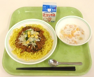 今日のジャージャー麺には、コクを出し、鉄を強化するために、レバーチップを加えました。今週土曜日の文化発表会に向けて、給食もしっかり食べてください。