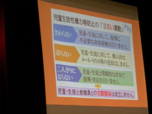 話は変わって、「児童生徒性暴力等防止の『3ない運動』」についてのお話もありました。学校の教職員との関わりの中で悩んでいたり、モヤモヤすること等があったら校長Formsは勿論、本日配布する相談シート、または各クラスのclassroomにアップした各種機関相談窓口などを利用し話してほしいという内容でした。