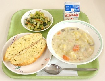 バジルフランス 白菜のクリームシチュー アーモンドサラダ 牛乳