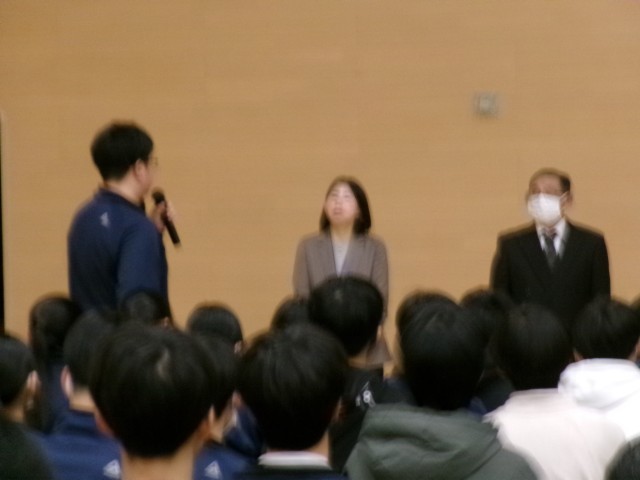9年生1時間目は、高島平町会会長の鈴木さんと、iCS委員の岸さんをお招きしての「地域づくりを学ぶ講演会」です。
