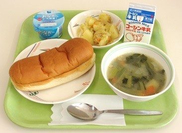 ホットツナドッグ ジャーマンポテト ABCスープ ヨーグルト 牛乳