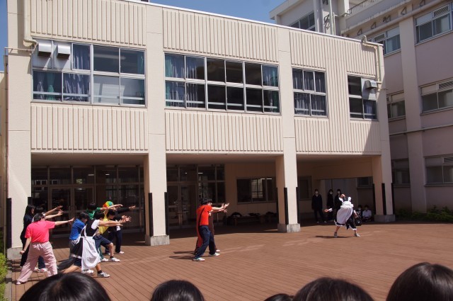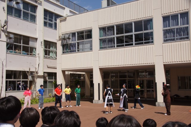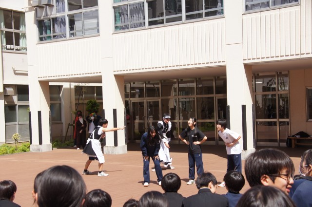 今日も昼休みの中庭は大盛況 演劇部ミニ公演