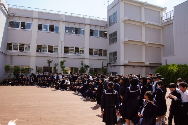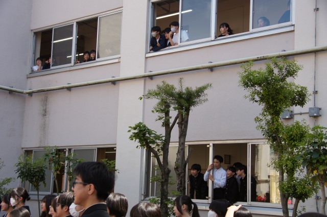 演劇部のミニ講演に校舎内の生徒が集まって、