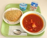 小松菜【ふれあい農園会山口さん】 じゃが芋【北海道】 もやし【栃木県】 白菜・キャベツ【茨城県】 豚肉【埼玉県・群馬県・茨城県】 長葱・胡瓜【埼玉県】 しめじ【長野県】 人参【熊本県】 きな粉【国産】 コーン缶【タイ】 ミルクパン【小麦:アメリカ・カナダ】