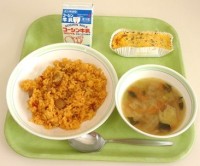炊き込みいなり 鯖の香り焼き 打ち豆入り味噌汁 水ようかん 牛乳