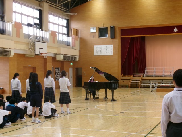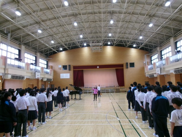 7年生は、学年全体で「夢の世界を」を合唱します。