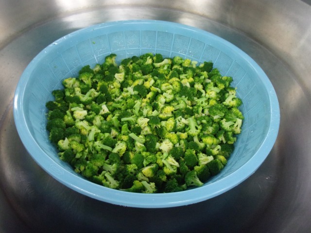 炒り卵: 溶き卵に顆粒だし(または塩、砂糖)を加え、フライパンで菜箸で混ぜながらそぼろ状に炒める。