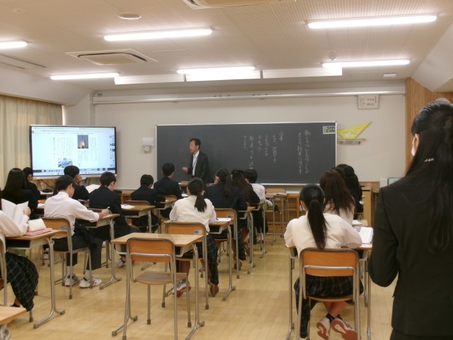後ろから、教育実習生も熱心に勉強しています。