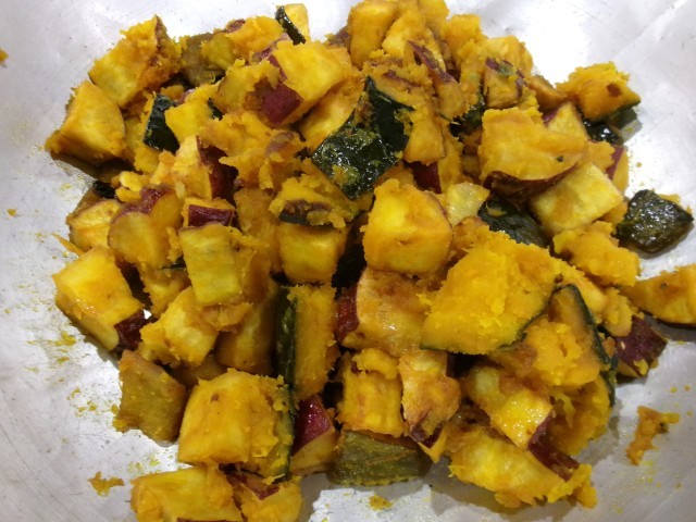 外側がよりカリッと仕上がります。この「大学かぼちゃ」は、お弁当のおかずにも、
