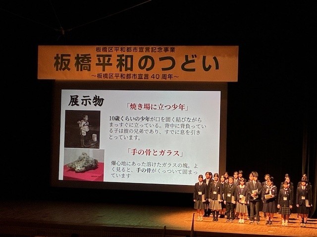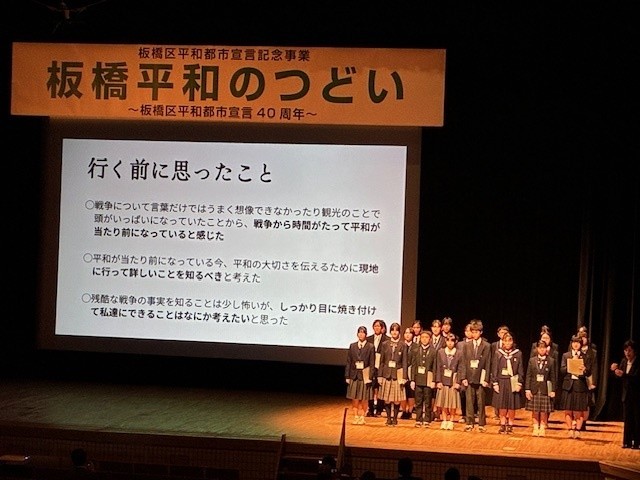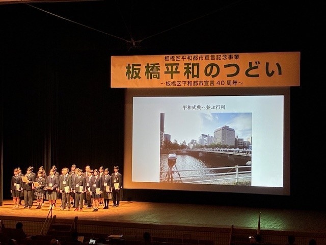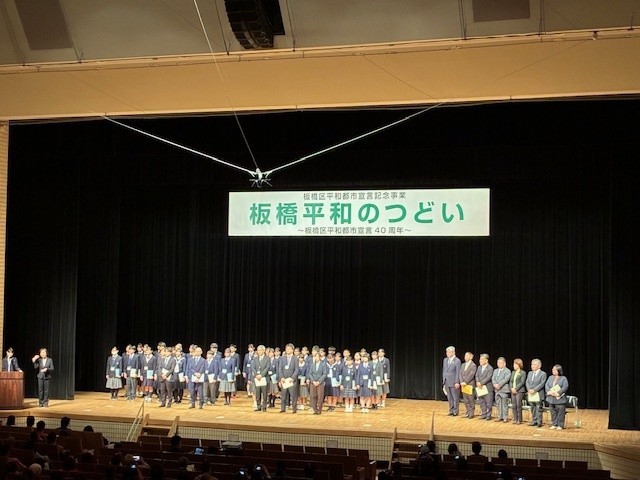 参加した中学生は体験発表会も行う。板橋平和のつどい毎年開催される記念式典。宣言文の朗読や、