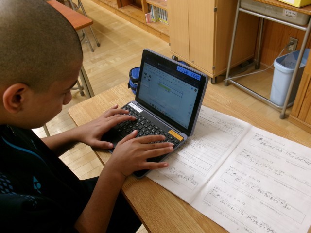 7年生は、職業調べの発表準備を整えています。
