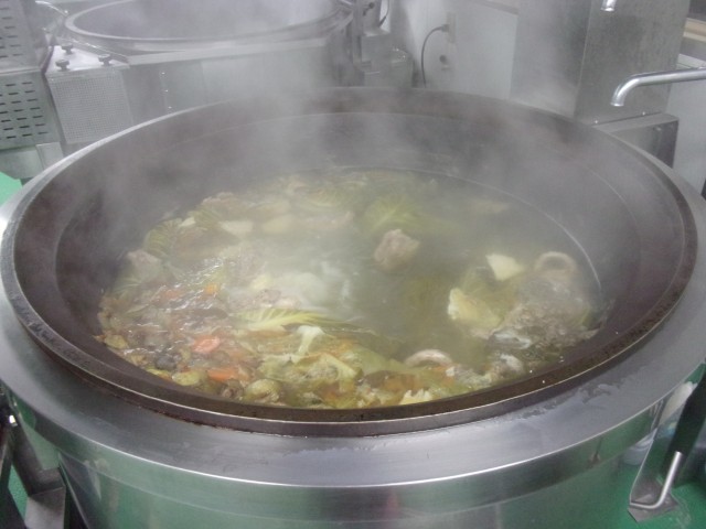 脱脂粉乳(スキムミルク): 大きなバケツで溶かしたものを配膳していました。