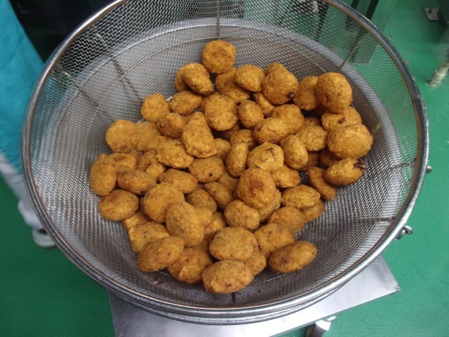 形: 日本のコロッケのような小判型ではなく、ピンポン玉のような丸くて小さい形が一般的です。