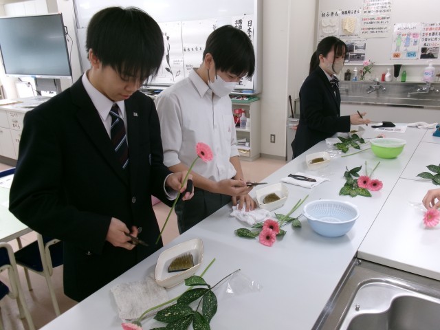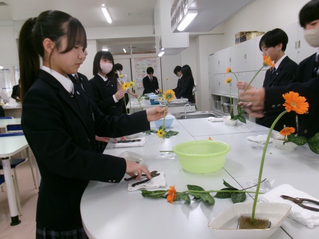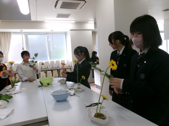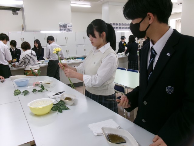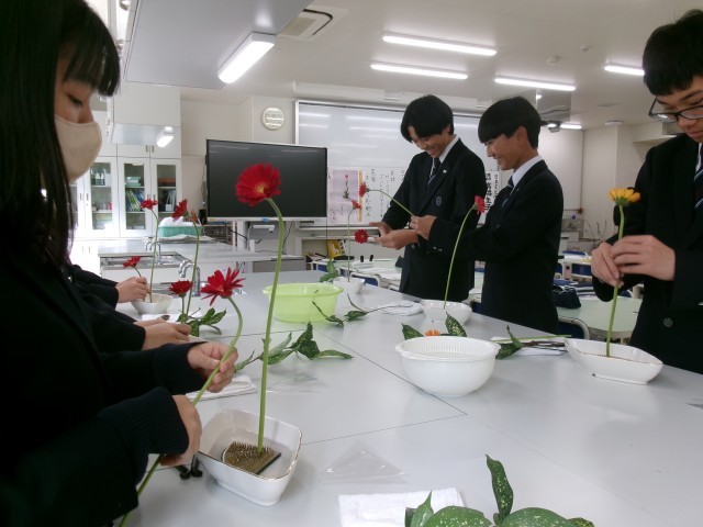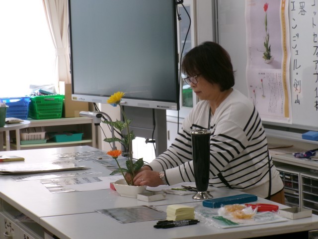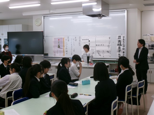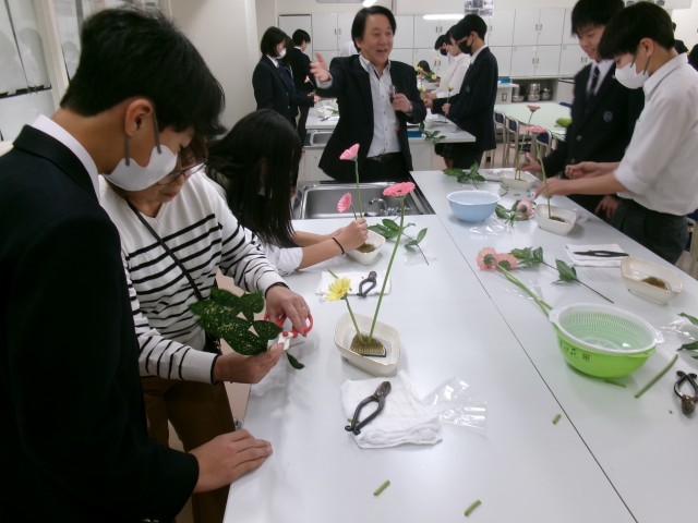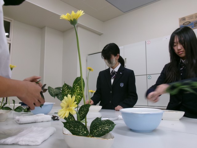 家庭科部でも講師を務めて頂いている、華道の先生をお招きしての授業です。