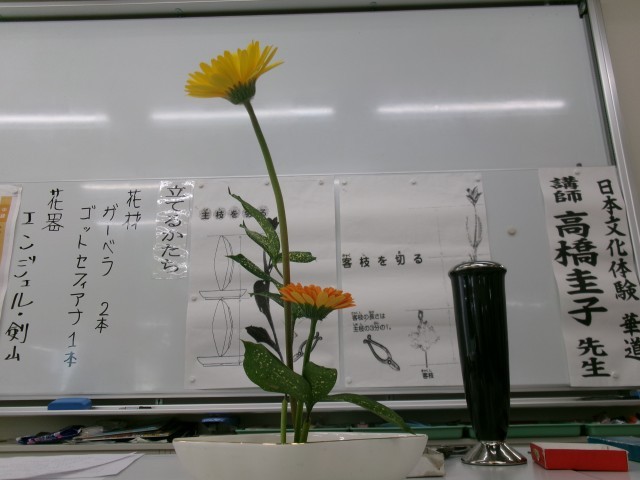みんな一生懸命に、学習したことを実践して花を生けていました。