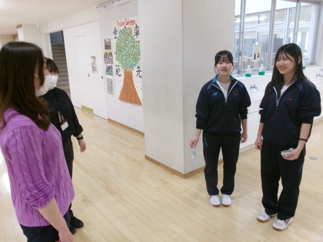 9年生が、明日気持ちよく登校できるように、昇降口や下駄箱、