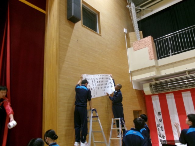 保護者の皆様の受付場所となる会場の設営、