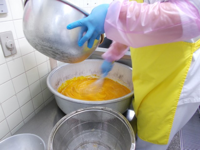 デザートは、かぼちゃを生地に加えた蒸しパンです。