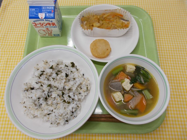 今日の献立は7年1組の生徒が考えました。献立のテーマは「季節にあった北海道の郷土料理 」です。