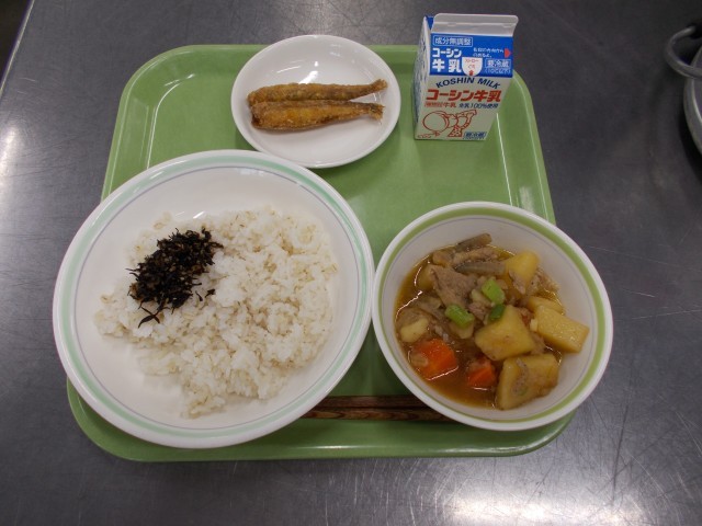ひじきふりかけは、水で戻したひじき、かつお節、ごまを炒って醤油や砂糖などで味付けをしました。