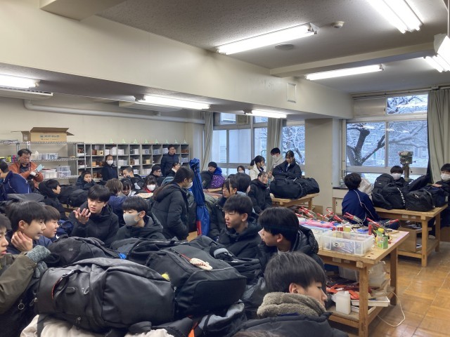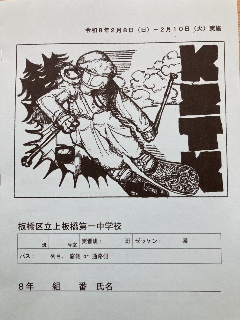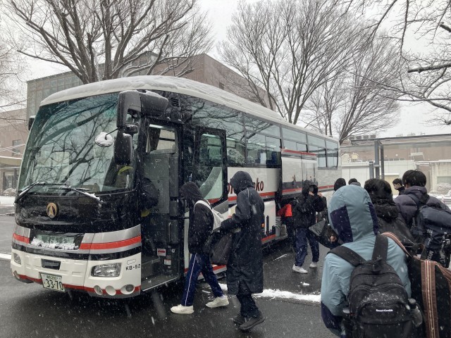 今日からスキー移動教室です。開校式を行い、パスに乗りこみました。