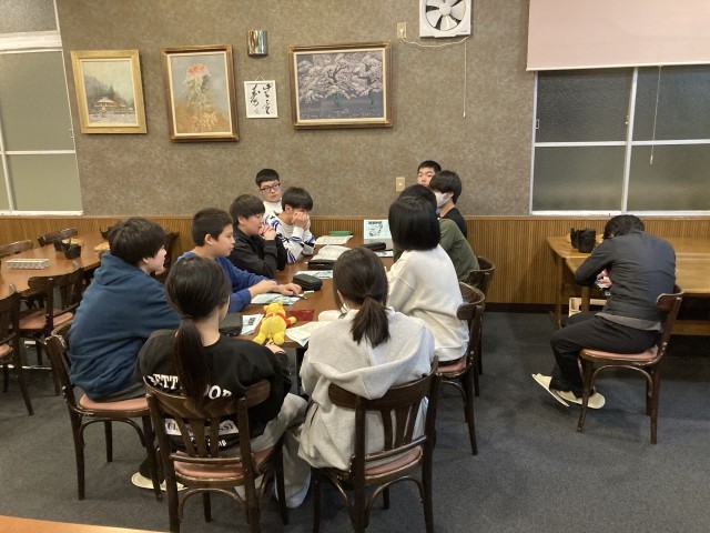夕食の後、係毎に集まり今日の振り返りをしました。