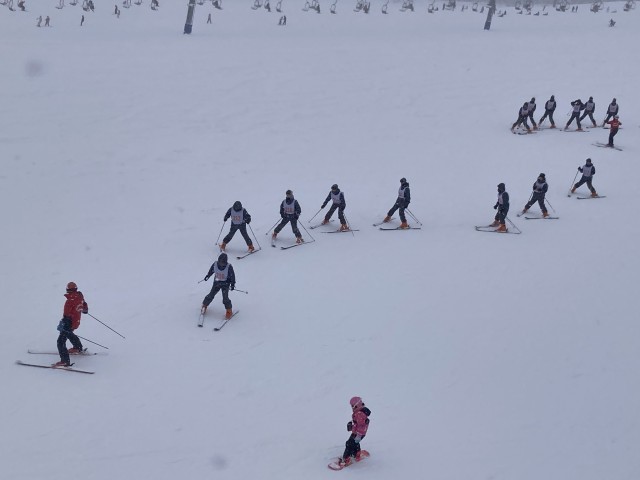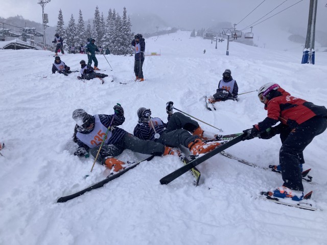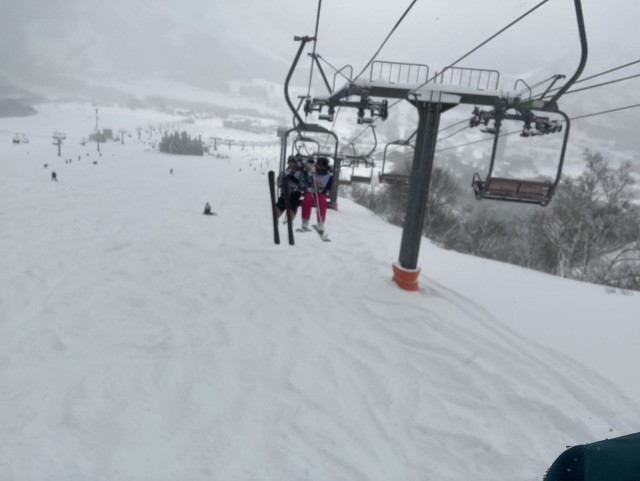 全部の班がリフトに乗り、どんどん滑っています。転びながらも上手になっています。