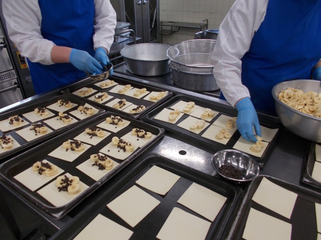 写真2:パイシートにバナナとチョコを乗せています。
