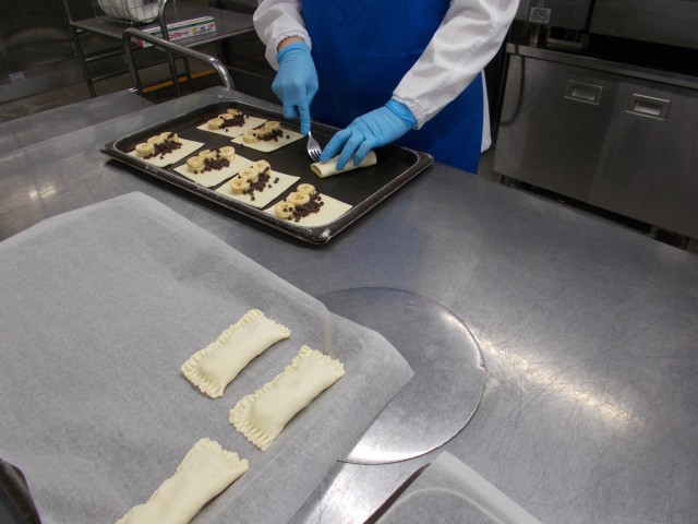 チョコバナナパイは、バナナとチョコチップをパイシートで包んで焼きました。