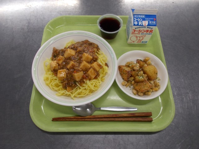 マーボー焼きそばは、炒めた麺に、麻婆豆腐をかけています。