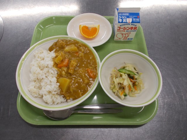 小学校のカレーライスよりもスパイスが効いた味付けになっているので、辛さは大丈夫か7年生に聞いてみると「思ったより辛いけど平気」「ちょっと辛い」「辛くない」ということでした。