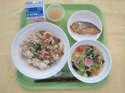 また、「桃」の節句にちなんで、桃ジュースを使ってゼリーを作りました。