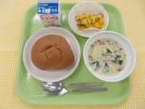 ココアパン 魚のミモザ焼き 鶏肉のクリームスープ 牛乳 魚のミモザ焼きは、ゆで...