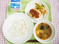<本日の献立>ごはん、おみくじコロッケ、こんにゃくサラダ、なめこのみそ汁、牛乳 今日の「おみくじコロッケ」は、コロッケの具材で今年の運勢を占います!コロッケの中には、3種類の食べ物のうち、どれか1つが...