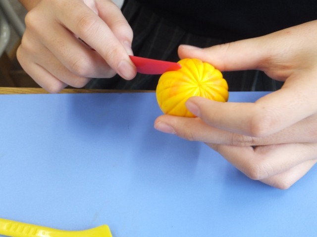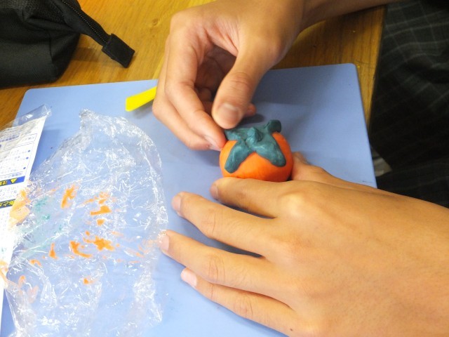 8年生は今美術で「季節を伝える和菓子」を樹脂粘土を使って制作しています。