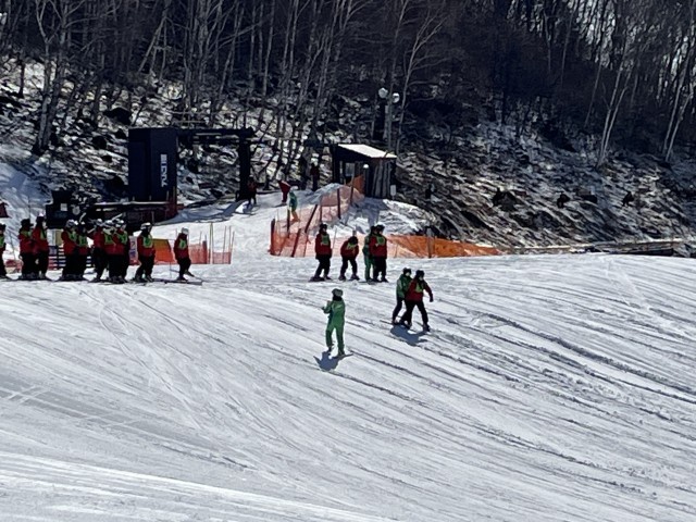 午前のレッスンが終わり、カレーの昼食後午後のレッスンがスタートしました。1日半のレッスンでだいぶ滑れるようになりました。