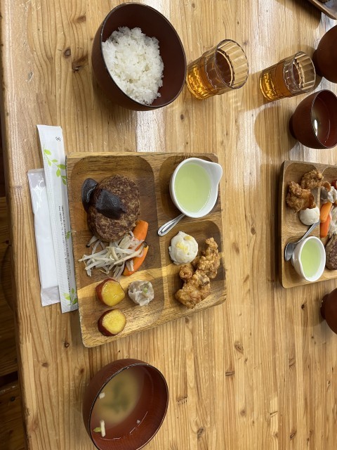 富士見高原スキー移動教室8年 公開日 2026/01/27 更新日 2026/01/27 令和7年度できごと 本日の夕食です唐揚げ ハンバーグ さつまいもの甘露煮 にんじんグラッセ ポテトです。お腹が空きましたね夕食が待ち遠しかったようです。この後は楽しみにしていたレクです。