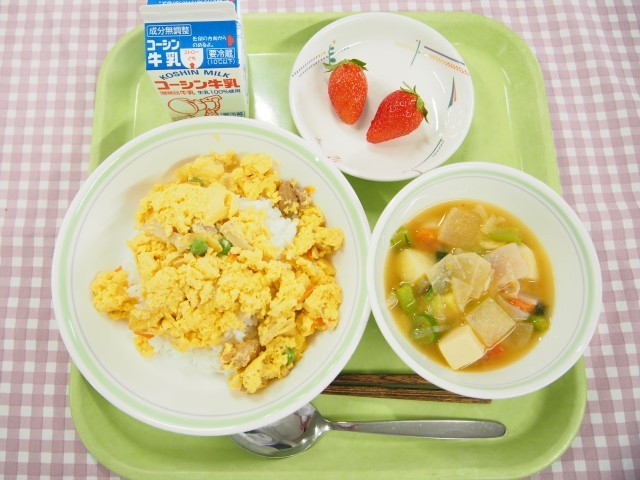 「変わり親子丼」には、鉄分が豊富な『高野豆腐』が使われています。鉄分は、血液をつくる材料となる重要な栄養素です。しっかり補給をして、貧血を防ぎましょう。