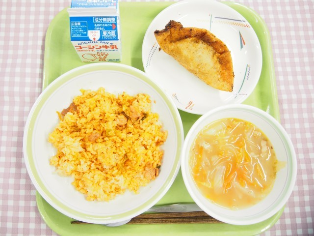 今日の「キムチチャーハン」は、リクエスト給食の主食部門で第2位になったメニューです。