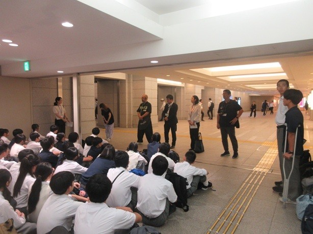 9年生の修学旅行が始まりました。広島1泊、京都1泊で、3年間続けた平和学習を広島に行くことで実際に見て・感じて・体験してくる日が来ました。被爆を実際に体験された方から直接お話を聞く機会や、平和記念公園を中心にボランティアガイドの皆様に説明を受けながら学びました。平和記念資料館でも展示を見学し今まで学んだことが実際に起こっていたことを皆で実感しました。また、テレビ新広島の取材がありその日のニュースで桜川中平和学習の修学旅行での取り組みが紹介されました。その後、広島から宮島へ移動しホテルへと到着しました。