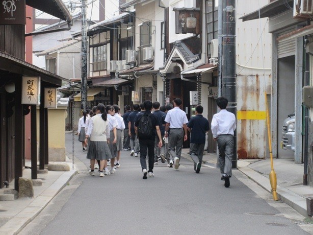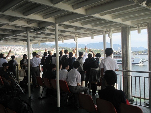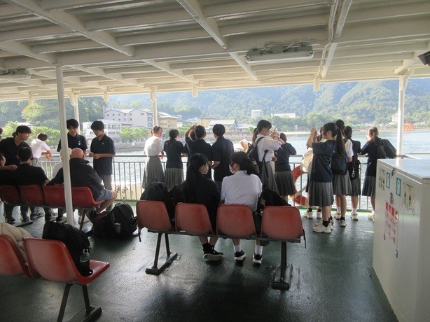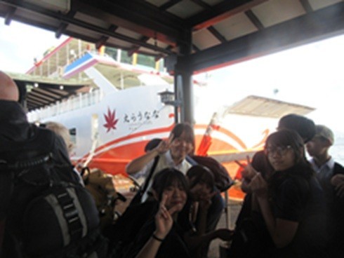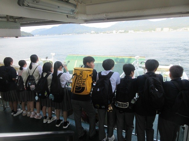 ホテルの朝食を終えて、フェリーに乗り山陽本線、新幹線と乗り継ぎ京都へ向かいました。フェリー下船後時間がなく、宮島口駅まで全員で軽くダッシュでした!予定の電車に乗れないと広島からの新幹線に遅れそうな緊張感がありましたが、全員無事に新幹線へ乗車できました。京都へ到着後は班別行動になります。各班で計画したコースを巡り2日目の宿舎へ向かいます。