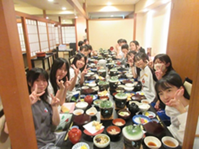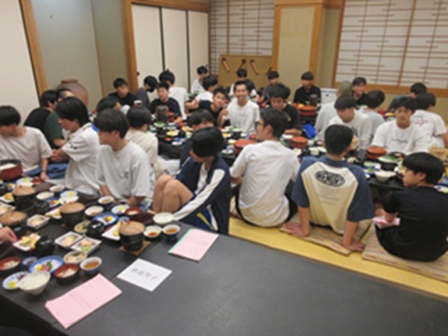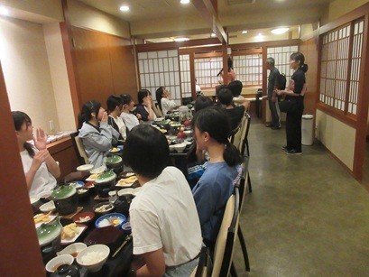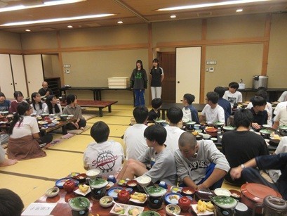 班別行動から宿舎へ到着し夕食をとりました。夜は自由時間で各部屋で楽しく過ごしていました。体調不良者が何人か出ましたが、看護師さんの指示で、十分な水分補給と早めの睡眠でよく休むようにしました。