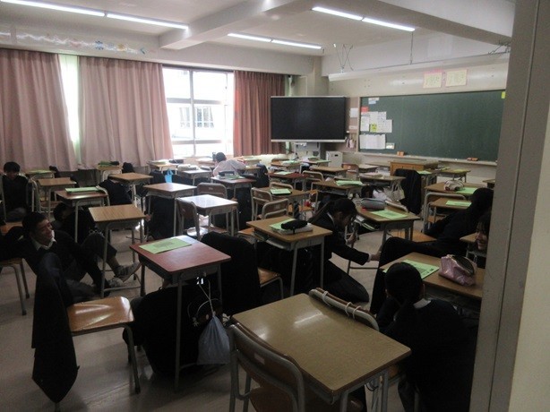 安全確保後に各クラスに戻って人数の点呼をして各学年から人数・安否確認を教員に報告してもらいました。その後各クラスで訓練の振り返りを行いました。